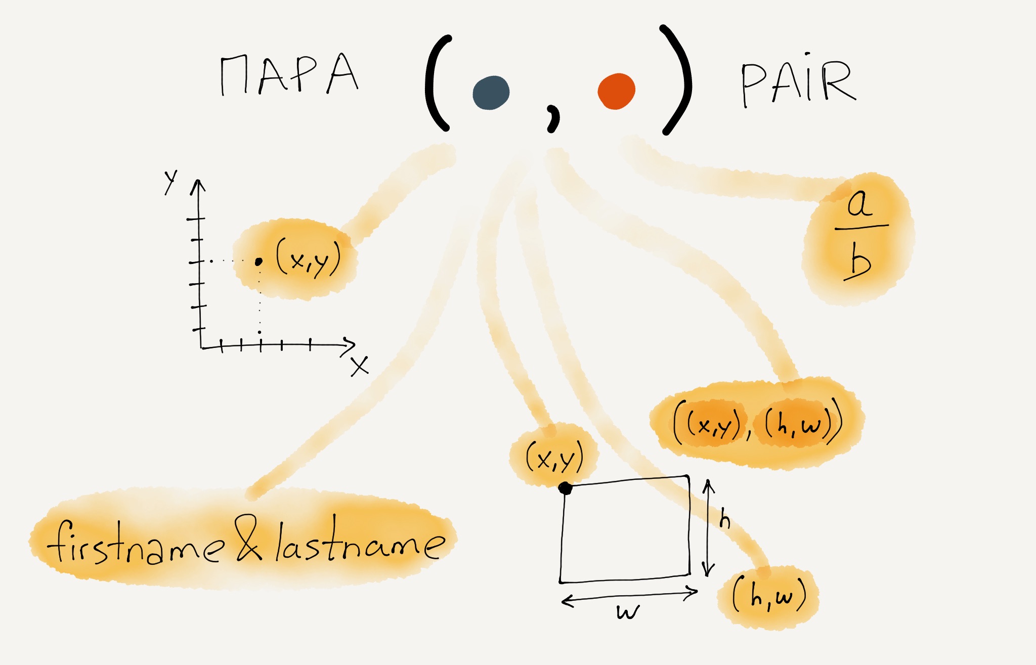 Пары отлично подходят для представления рациональных чисел. Первый элемент пары может выступать числителем, а второй элемент — знаменателем.