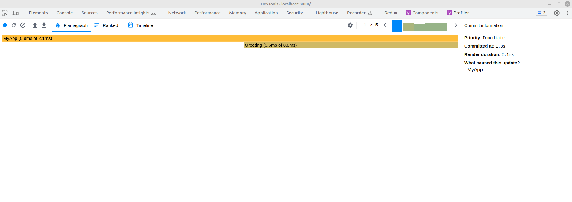 Теперь, если ввести в поле значение, то по профайлеру или выводу логов мы увидим, что компонент Greeting не отрисовывается.